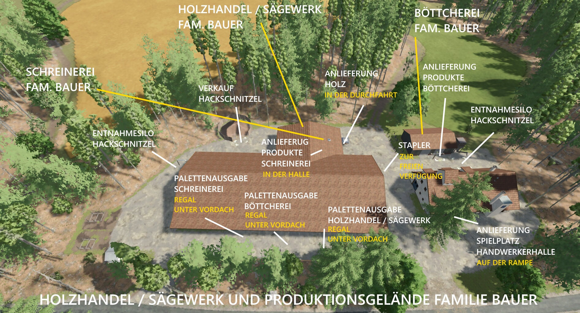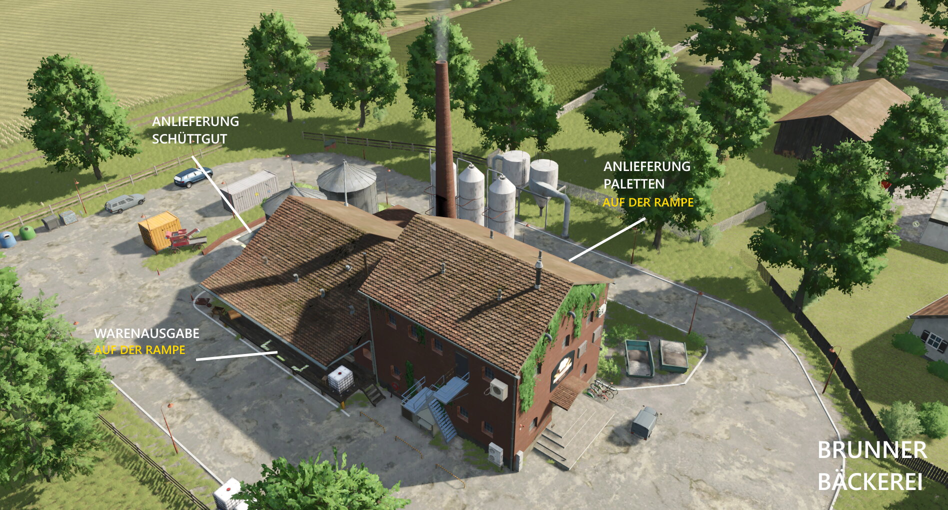 Bei der Bäckerei muss aufgepasst werden wo welche Paletten spawnen da es dort nun zwei Zonen für Paletten und eine für lose Güter gibt.