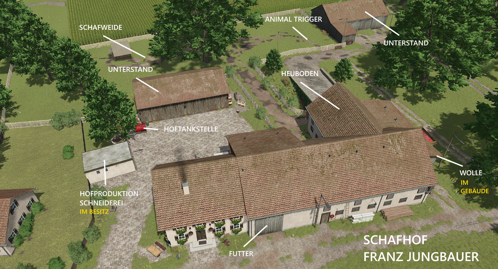 - auf dem Schafhof gibt es nun einen Heuboden wo unten das abkippen ist und im Dachboden die entnahme ist ( wird aber nur bei einem neuem Spielstand zu sehen sein oder ihr kopiert euch die Zeile "50" aus der "placeables.xml" von der Mod Karte in euren bestehenden Spielstand ) -
