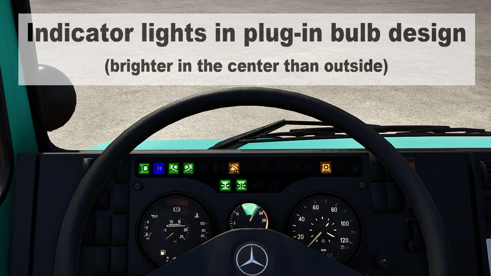 Der Unimog verfügt im Vergleich zu anderen LS-Fahrzeugen über zusätzliche funktionierende Kontrollleuchten: